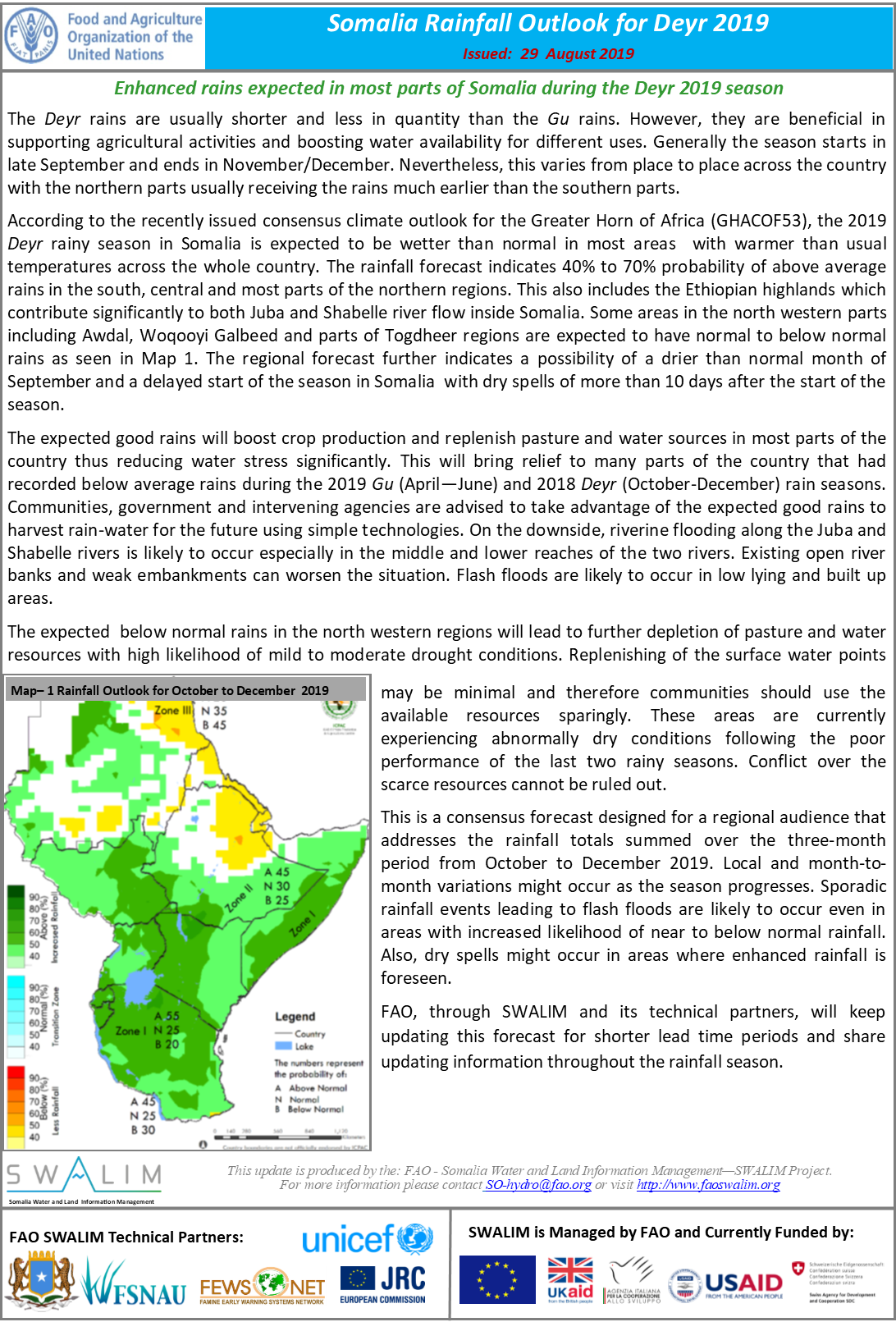 Mogadishu, Somalia: Immediate preparedness measures are essential to safeguard Somali communities from the anticipated below-normal rainfall forecast for the March-April-May 2025 (Gu) season.SWALIM Publications