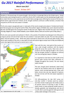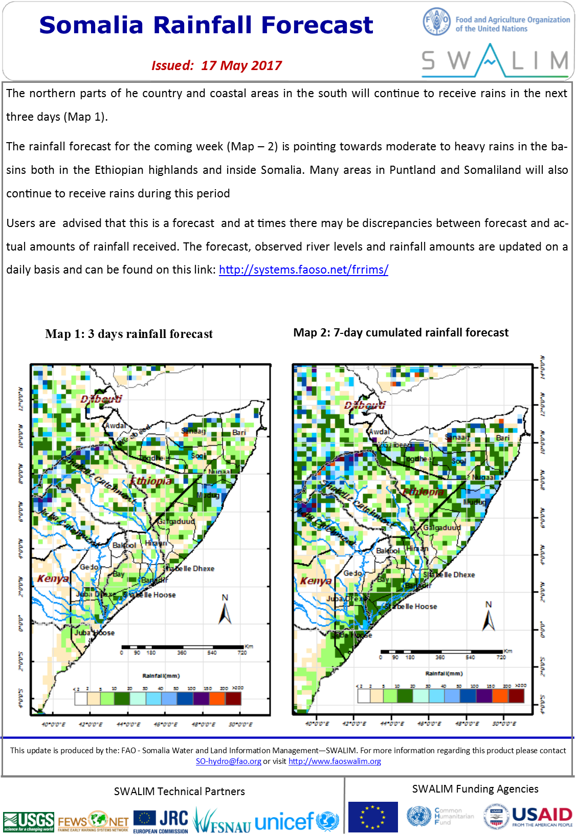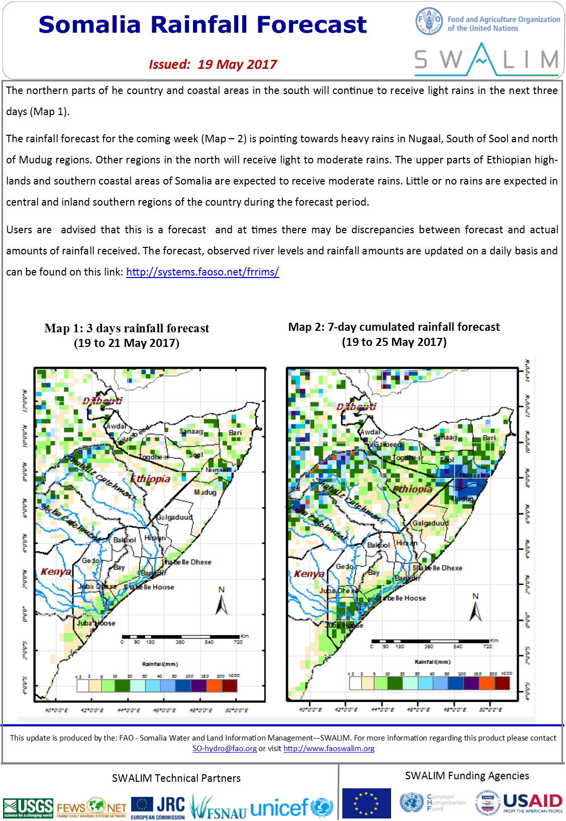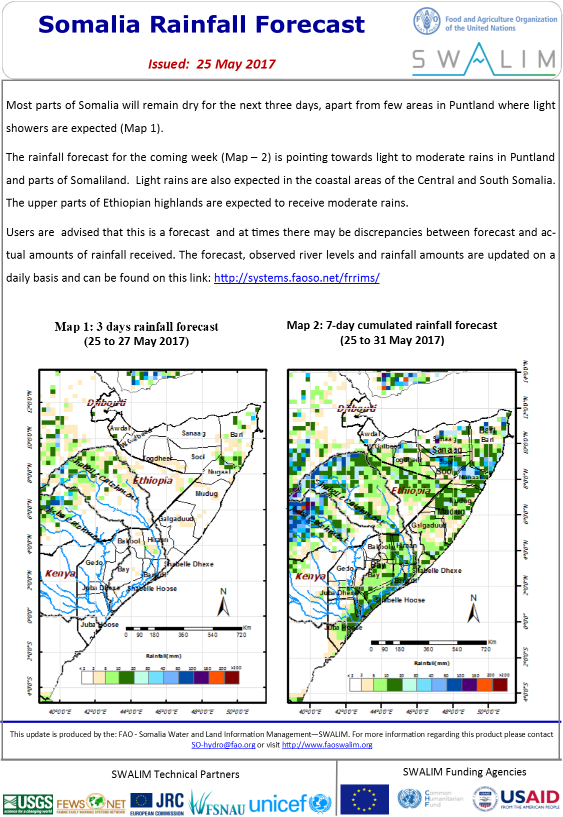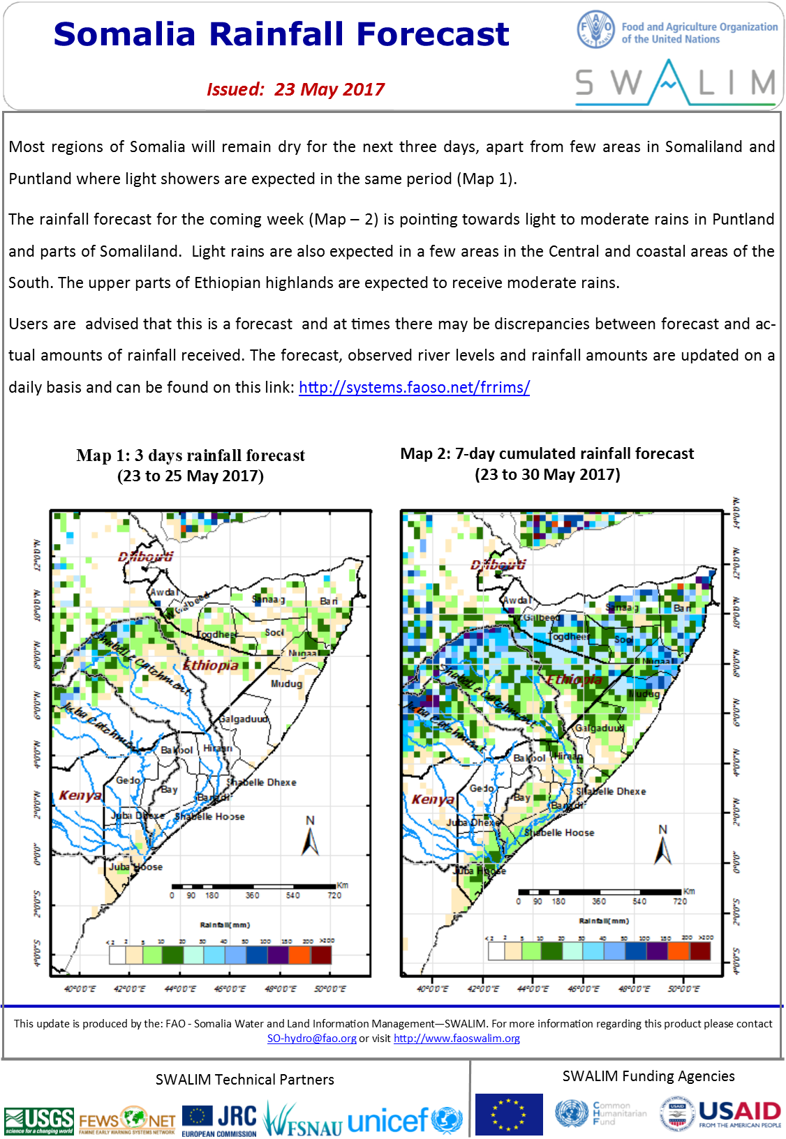 According to NOAA-NCEP GFS, light rains are likely over some areas in the south with dry conditions expected to prevail in most other parts of the country, particularly Somaliland and Puntland (Figure 2).Publication Download