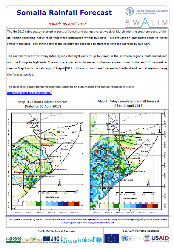 Tobankii maalmood oo dambe waxaa ka jirey roobab aad iyo aad u culus gudaha qaar ka mid ah gobollada Koonfureed iyo bartamaha Soomaaliya oo sababay fatahaad iyo barkac ka dhacay gudaha dhawr meelood.Publication Download
