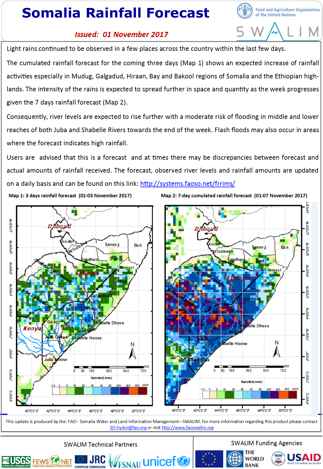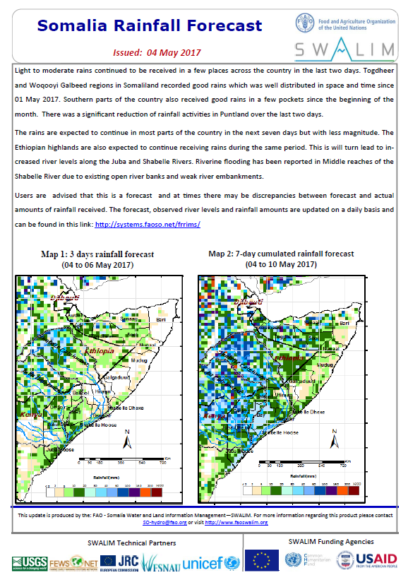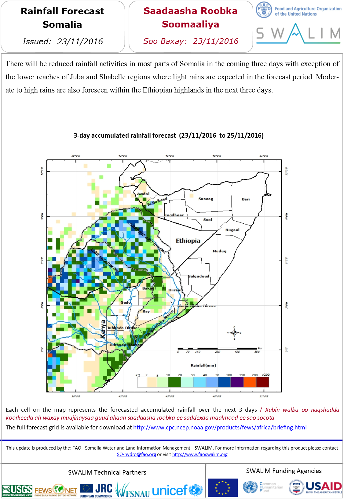 SWALIM waxay siideynaysaa warbixinta ugu dambaysa oo ku saabsan Gebiyo-jajabyo Webi : Falanqayn daba socota masawirrada dayax-gacmeedkii ugu dambeeyey, qaar ay dhaw yihiin oo ay yihiin kuwii toddobaadkii la soo dhaafay (17 Sabteembar2016), SWALIM waxay siideysay farriin cusub oo ku saabsan xaaladda Webiyada Juba iyo Shabeelle ka hor roobab xilliyeedka Deyrta, kuwaas oo la filayo inay bilowdaan bartamaha Oktoobar (qiiyaas waqti saddex toddobaad ay naga xigto).SWALIM Publications