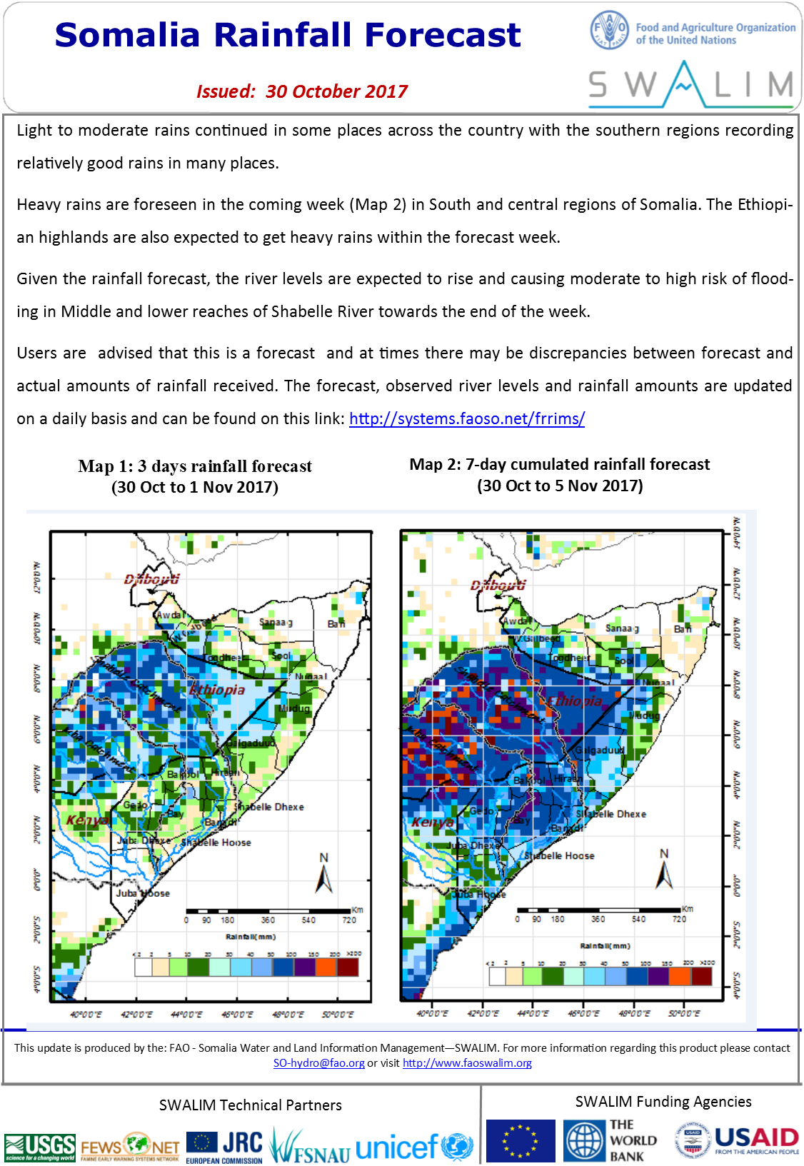 Toddobaakii la soo dhaafay waxaa la arkayey kororka roob-di’idda guud ahaan Soomaaliya. Meelo badan oo ku yaal dooxooyinka Juba iyo Shabeelle ee Koonfurta, waa la diiwaaniyey 50 mm ilaa 70 mm wadar ahaan.Publication Download