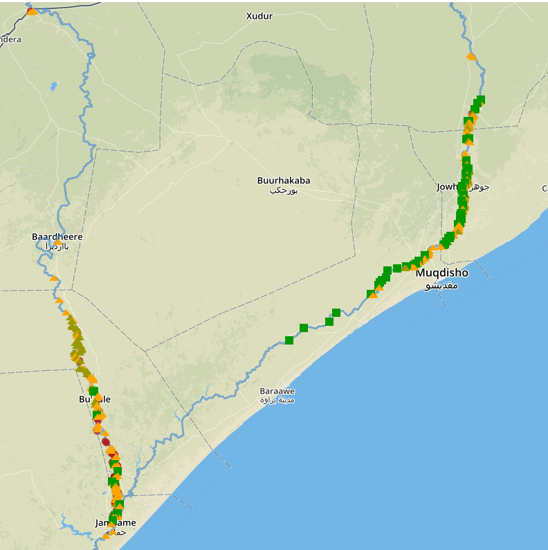 Khariidadda xaaladda gebiyada-jebsan iyo xogta- saldhigga waxaa lala wadaagaa Dawladda Fadaraalka iyo hawl-la-wadaagta waxqabadyada si loogu hawgalo ka hor inta uusan bilaaban xilli roobaadku. Isla macluumaadka ayaa sidoo kale laga dhigay mid lagu helo khadka Internetka iyadoo loo marayo xiriirka ah: http://systems.faoso.net/frrims/rivers/breakages.