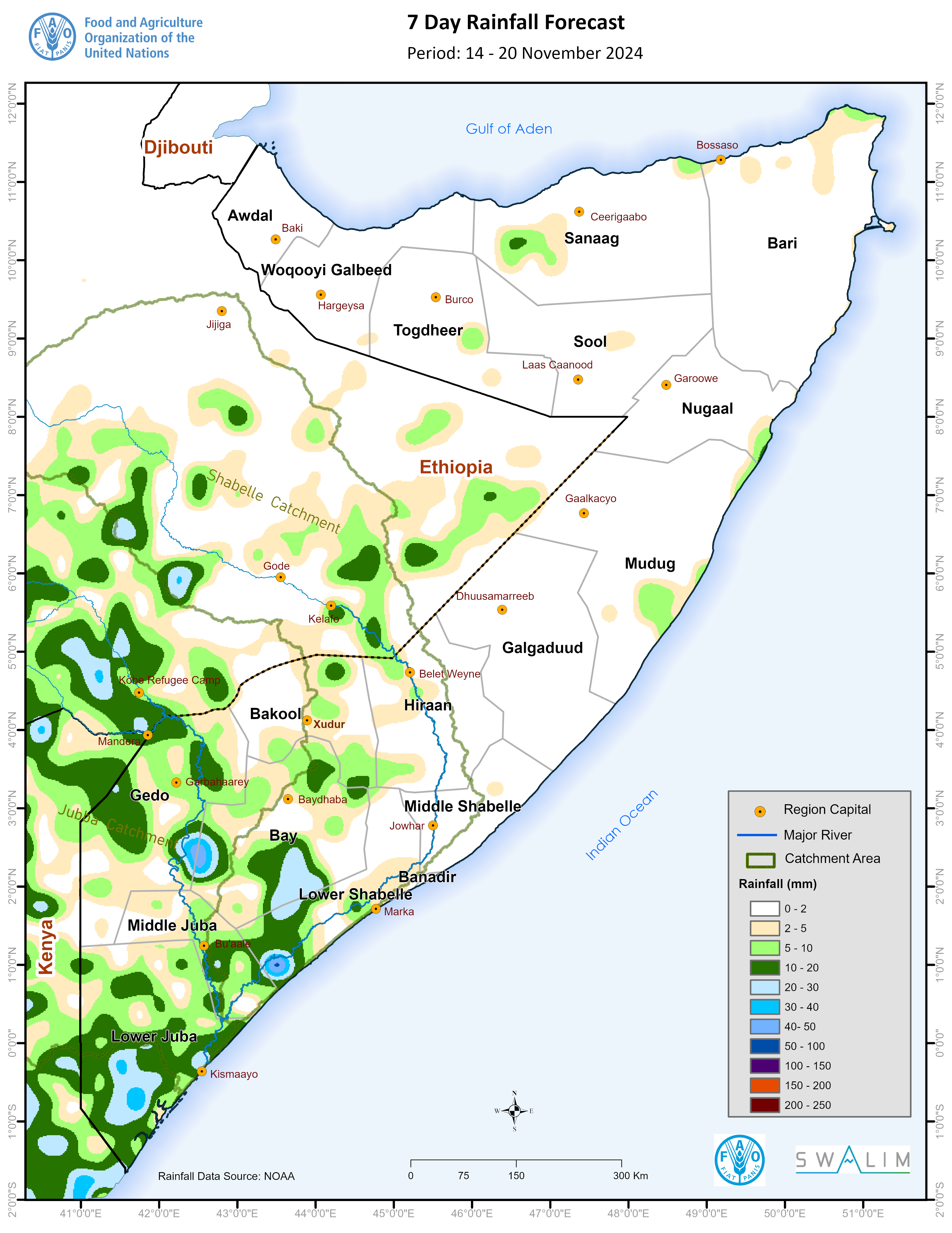 According to NOAA-NCEP GFS, light rains are likely over some areas in the south with dry conditions expected to prevail in most other parts of the country, particularly Somaliland and Puntland (Figure 2).Publication Download