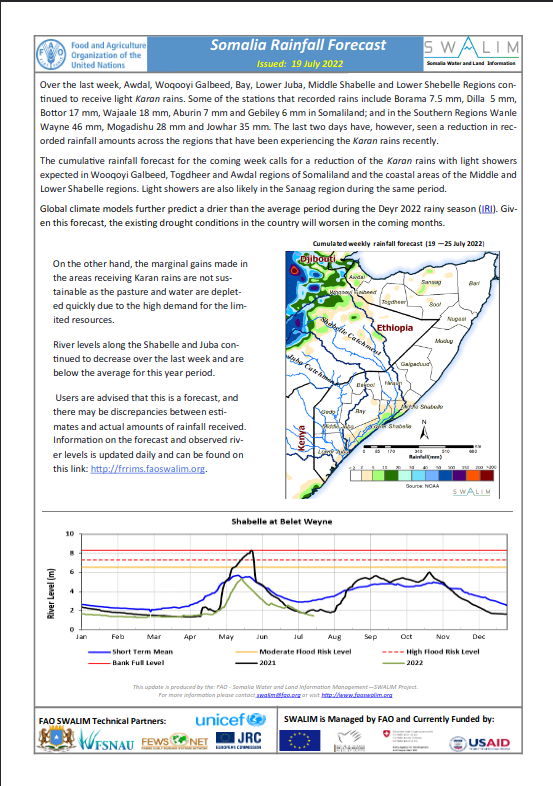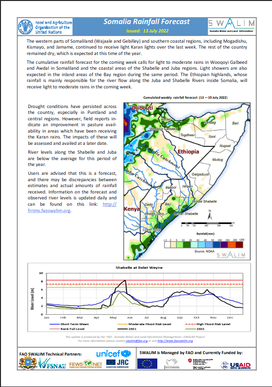 SWALIM is a multi-donor project managed by FAO and currently funded by The European Union, The World Bank, FCDO, AICS, SDC, Canada, Sweden and GCF