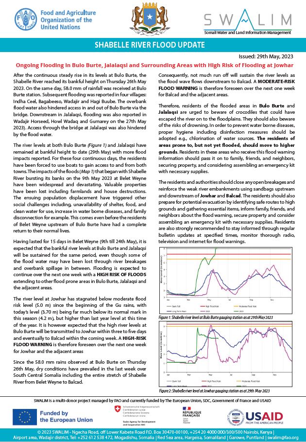 Based on the available observed and forecast data, the likelihood of flooding along both Juba and Shabelle Rivers remain low.