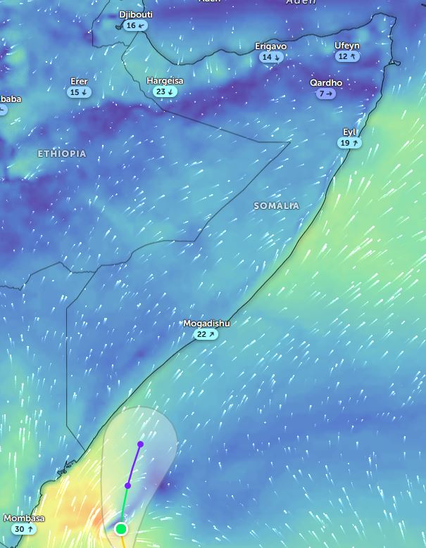 As the Inter Tropical Convergence Zone (ITCZ) moves further south, the Northeast monsoon will develop further with strengthened wind conditions particularly at Eyl district in Nugaal region and Bandarbeyla district in Bari region. The light rains along the narrow northern coastal areas are therefore likely to be favoured by the moisture influx associated with these winds. However, the present and forecast forward propagation of the Madden Julian Oscillation (MJO) index is likely to suppress moisture availability with very low chance of significant rainfall in the next two (2) weeks.