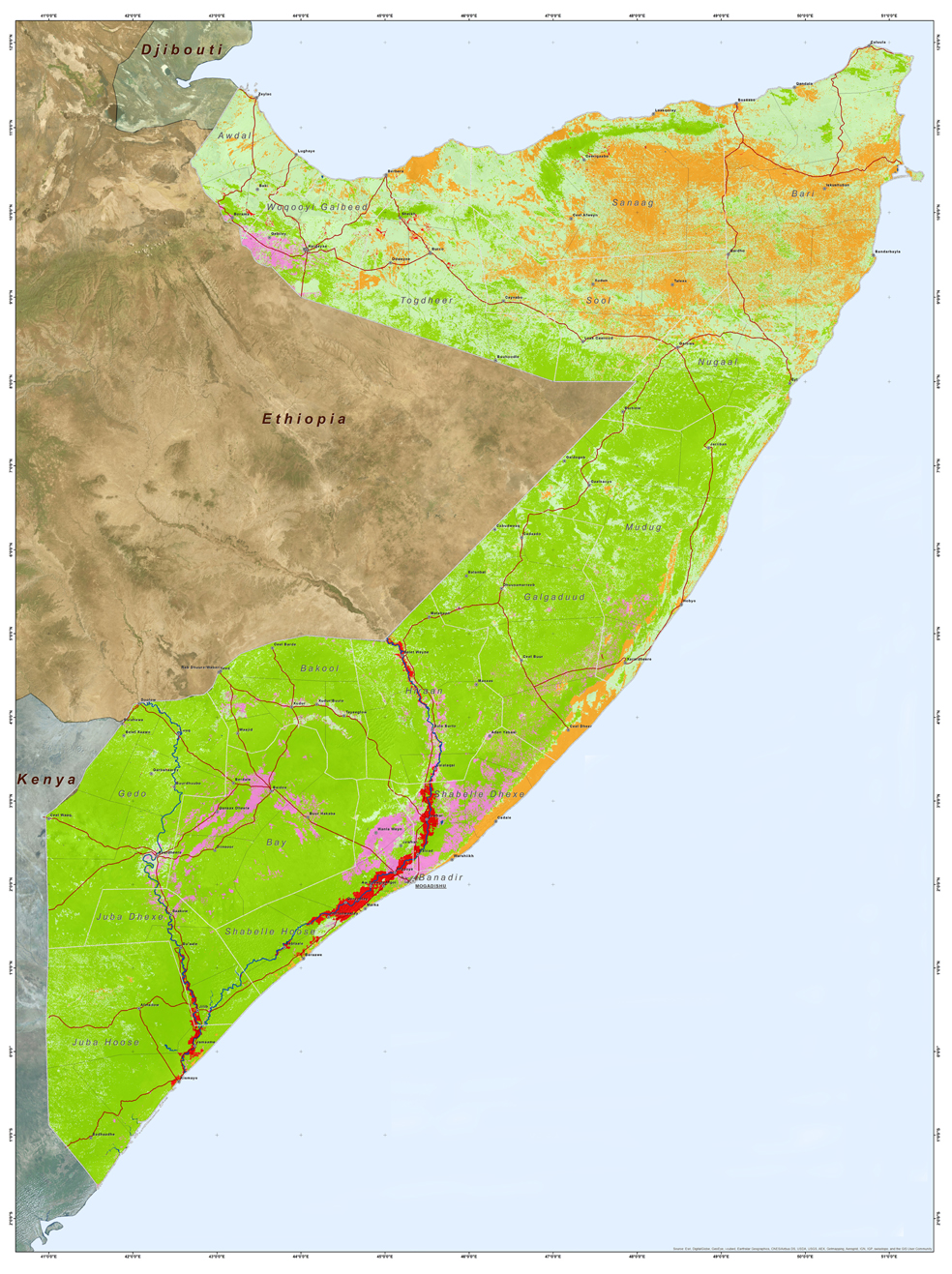 A description of the main land cover types and vegetation units and their locations in two study areas is given in detail in the Land Cover of Selected Study Areas inSomaliland and Southern Somalia - Report No L-03.