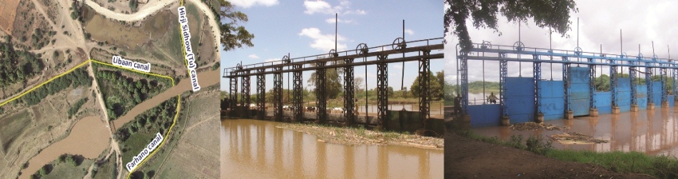 Aerial photo of area around Qoryooley Barrage Qoryooley barrage before rehabilitation Qoryooley barrage after rehabilitation