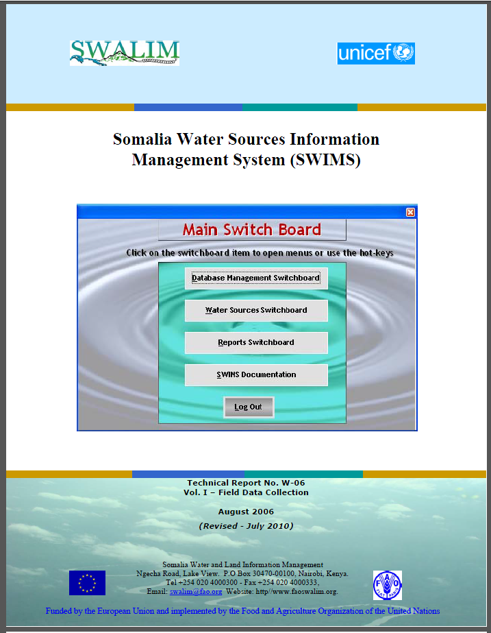 SWIMS is a tool designed to build an inventory of water sources in Somalia that will allow a basic characterization of the sources in terms of physical, socio-economic and management practices.The purpose of this field guide is to ensure a common approach to collecting data in the field is employedPublication Download