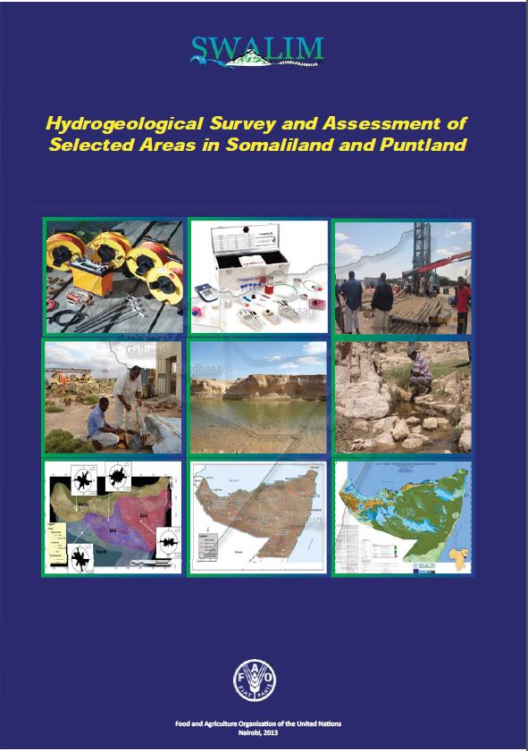 SWALIM has recovered and produced a vast number of water-related publications touching on areas such as water quality, rainfall, irrigation, water supply, rain water harvesting, water demand among others. These publications can be accessed through our digital library which allows you to browse and search for publications based on specific topical areas of interest, titles and types of publications or names of authors. Below are some of the highlighted SWALIM publications. To search for specific publications, please visit our Library.